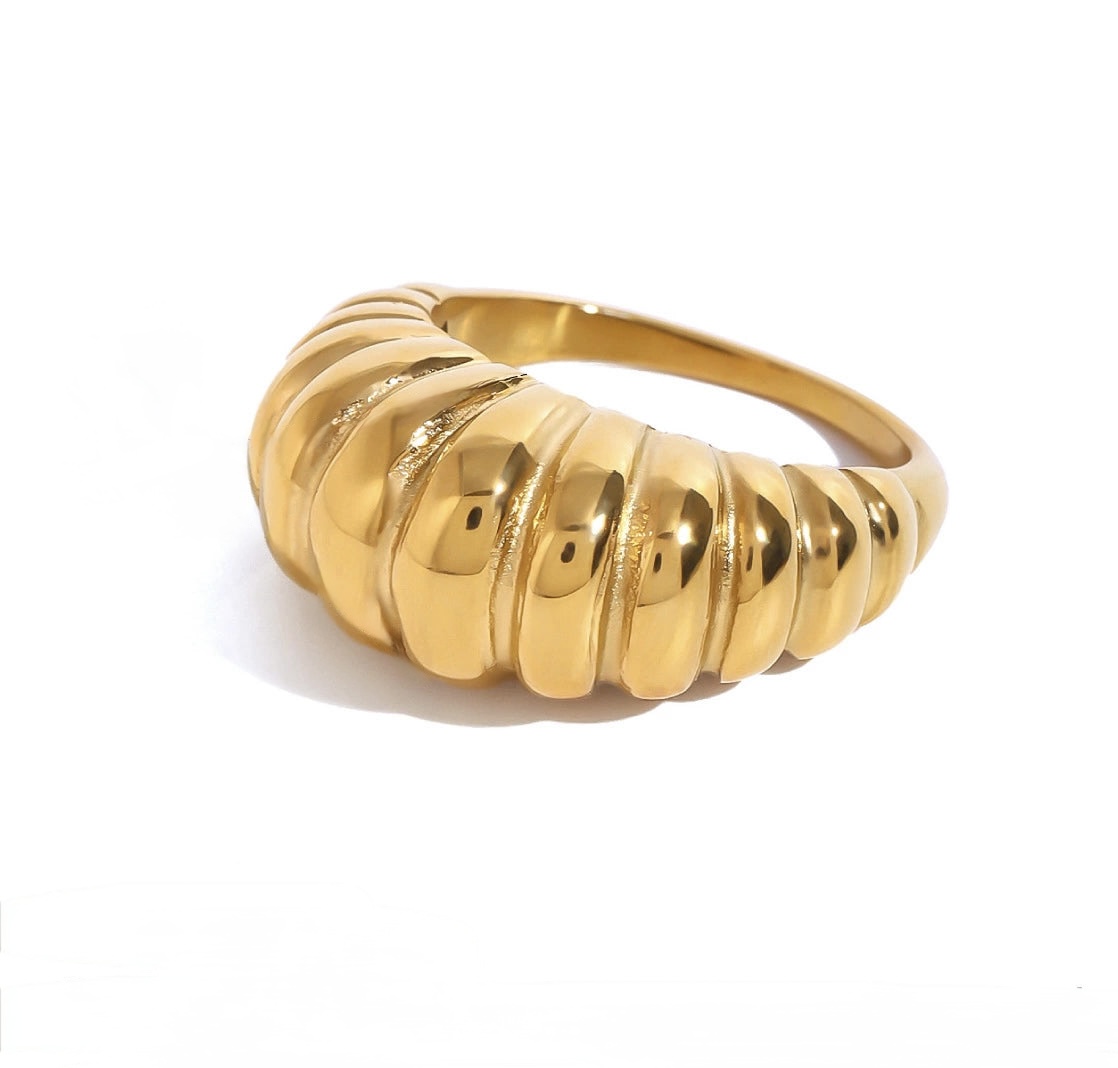 Chunky ribbed dome design in polished gold finish. Bold yet lightweight, ideal as a statement piece.